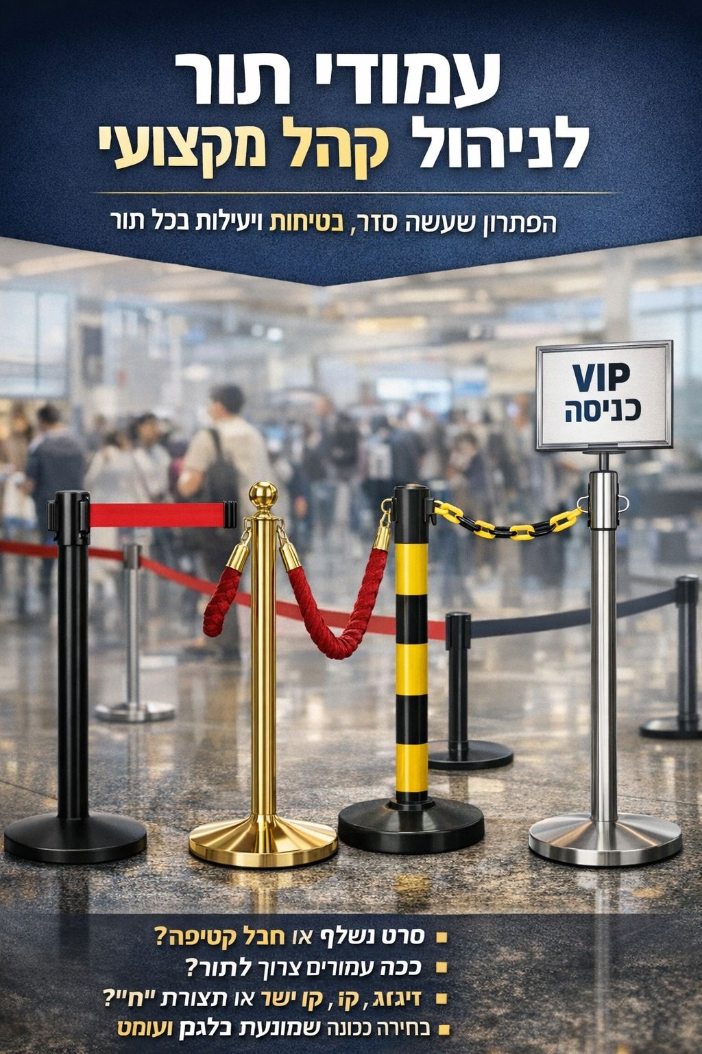 🎗️ עמוד תור עם חבל קטיפה — פתרון תדמיתי ואסתטי