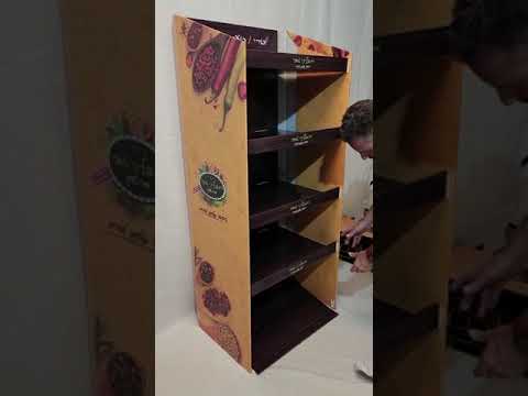 הפתרון האולטימטיבי להצגת תבלינים, פיצוחים ומוצרי מדף ארוזים בצורה שמושכת תשומת לב ומגדילה מכירות. סטנד רצפתי מקרטון המעוצב במיוחד עם חלוקות פנימיות למדפים בהתאם למידות המוצר, המאפשר ארגון מופתי וגישה נוחה ללקוח. המעמד עשוי מקרטון קל משקל אך חזק במיוחד, המקל על השינוע וההקמה המהירה בשטח החנות. ניתן להתאמה אישית מלאה הכוללת מיתוג גרפי ליצירת בידול מהמתחרים.
